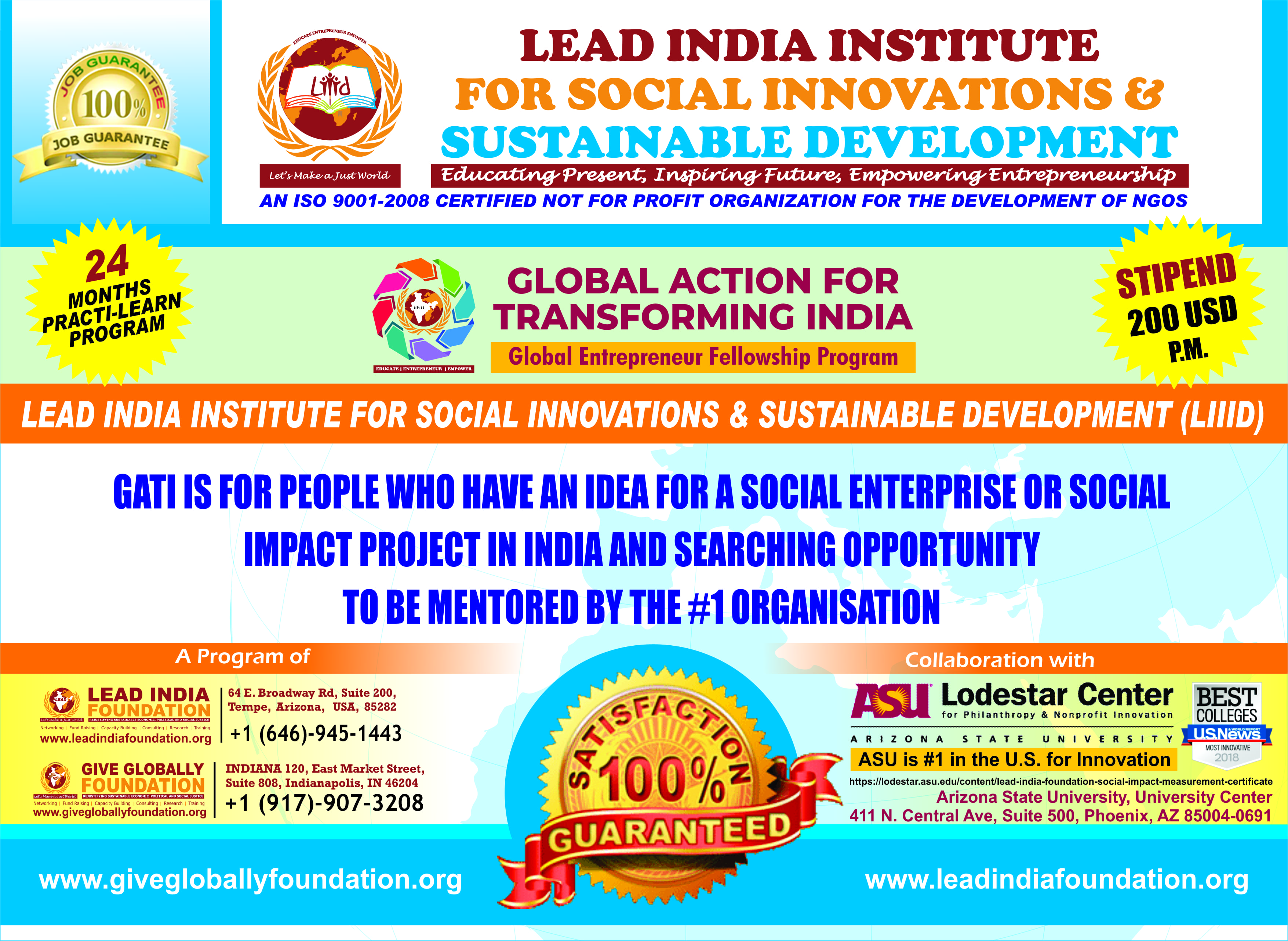 Global Action for Transforming India (GATI) led by Lead India Foundation has been helping early stage ventures since 2002. Leveraging on the experience and expertise, the social incubation program started in 2015. We select and nurture early-stage social ventures, helping them scale up to deliver sustained impact.